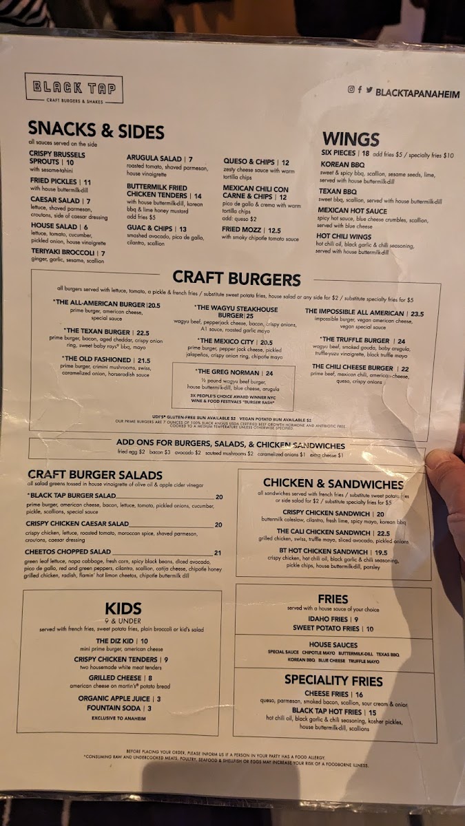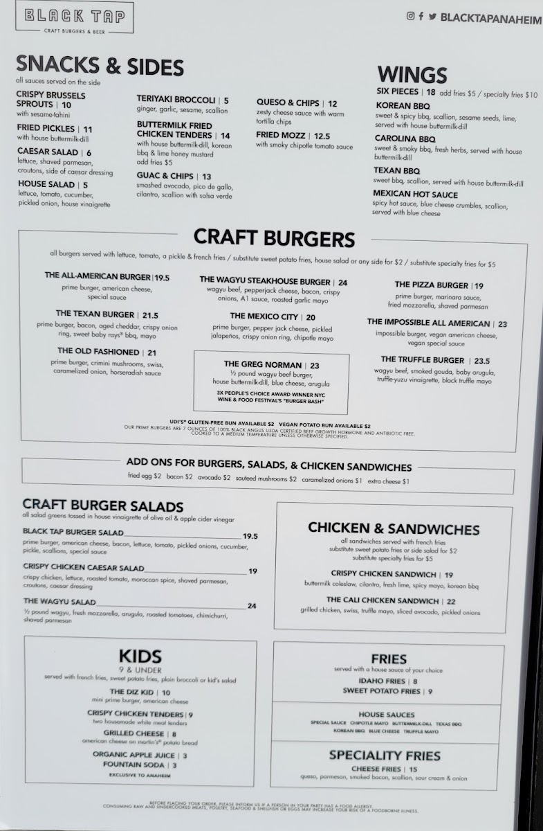 Black Tap Craft Burgers & Shakes Menu